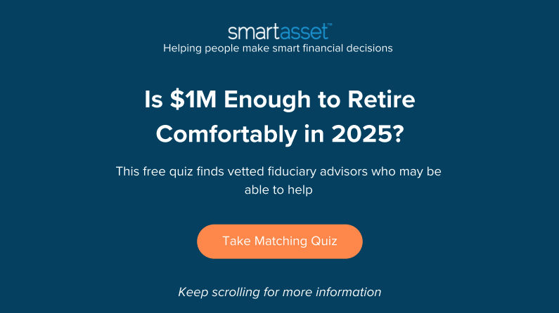This is not an offer to buy or sell any security or interest. All investing involves risk, including loss of principal. Working with an adviser may come with potential downsides such as payment of fees (which will reduce returns). Past performance is not a guarantee of future results. There are no guarantees that working with an adviser will yield positive returns. The existence of a fiduciary duty does not prevent the rise of potential conflicts of interest. SmartAsset.com is not intended to provide legal advice, tax advice, accounting advice or financial advice (Other than referring users to third party advisers registered or chartered as fiduciaries ("Adviser(s)") with a regulatory body in the United States). The article and opinions in this publication are for general information only and are not intended to provide specific advice or recommendations for any individual. We suggest that you consult your accountant, tax, or legal advisor with regard to your individual situation.