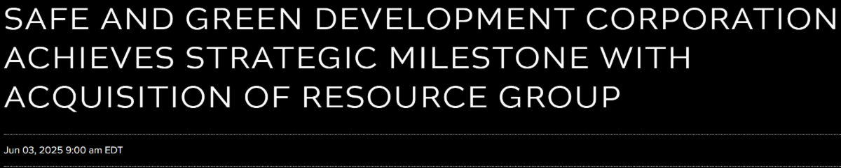 | In June 2025, Safe & Green Development Corp. announced it had closed the deal to acquire Resource Group US Holdings LLC, a game-changing environmental solutions company reshaping organic waste recycling.