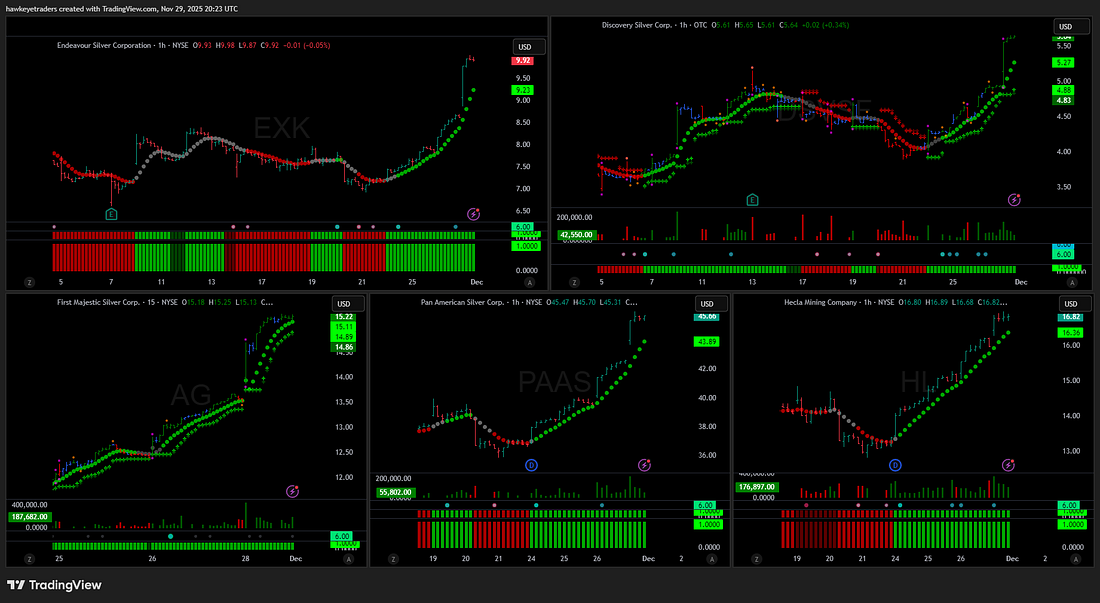If you only watched the indexes, you saw a choppy rebound in tech and another round of macro arguments about the Fed. If you watched where the money actually went, you saw the next phase of this rotation come into focus. Here is how it is taking shape. Hard Money Just Took The Stage: Silver, Gold, And The New Scarcity TradeThe first and loudest message this week came from the metals tape. Silver pushed through fresh highs near 55 dollars an ounce on the back of seven years of supply deficits, record industrial demand from solar and electronics, and a flood of ETF inflows that has pushed total holdings above 40 billion dollars in value. Analysts are now openly talking about the potential for an extended bull market in silver into 2026, with technical breakouts confirming the move. The equities responded exactly the way you would expect at the beginning of a new leg higher. Endeavour Silver (EXK), Discovery Silver (DSVSF), First Majestic (AG), Pan American Silver (PAAS), Hecla (HL), and a long list of secondary producers all posted powerful double digit weeks. This was not a single headline spike. It was a broad based repricing across the silver and polymetallic complex. Gold names did their part as well. Harmony Gold (HMY), Novagold (NG), New Gold (NGD), SSR Mining (SSRM) and others all caught strong bids as the metal followed silver higher and investors looked for leverage on any continued move. Reports out of the futures markets even noted a conveniently timed “cooling failure” at the CME data center in Aurora while silver futures were attempting to break out above key resistance, which only added fuel to the narrative that real supply and demand are beginning to overwhelm paper games. The interesting part is not just that metals went up. It is where they sit in the bigger story. You now have: