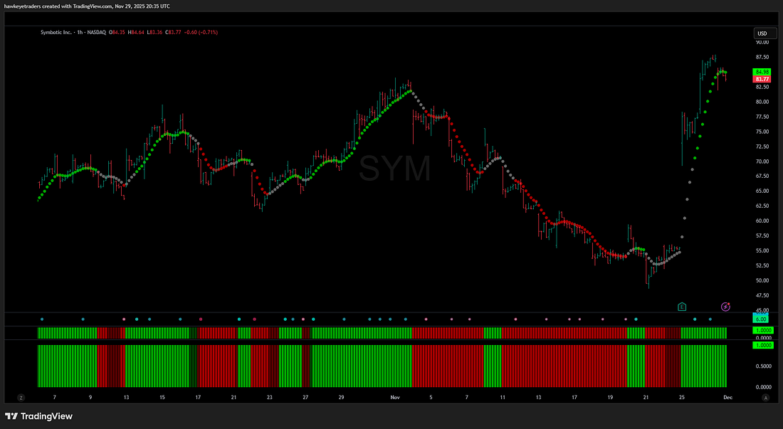 When department stores that everyone left for dead suddenly trade like growth stocks again, you pay attention. The Machine Layer: Warehouse Robots, Power Hardware, And The Plumbing Of AIWhile the front page debated whether AI stocks are in a bubble, the real story moved deeper into the stack. Symbotic (SYM), which builds automated warehouse systems for big box retailers and logistics players, put up another monster week. The company has been one of the clearest earnings winners in the market, riding a secular wave of supply chain automation that is only accelerating as labor stays tight and e commerce volumes rise. Recent reviews of top growth and AI names have repeatedly highlighted Symbotic as a showcase of real revenue tied to the AI and automation boom, not just a slide deck story. On the industrial and energy side, Argan (AGX), Bloom Energy (BE), Eos Energy (EOSE), Qube Holdings (QUBHF), ZIM Integrated Shipping (ZIM), and several engineering and construction names posted strong weekly moves. These companies sit at the intersection of: