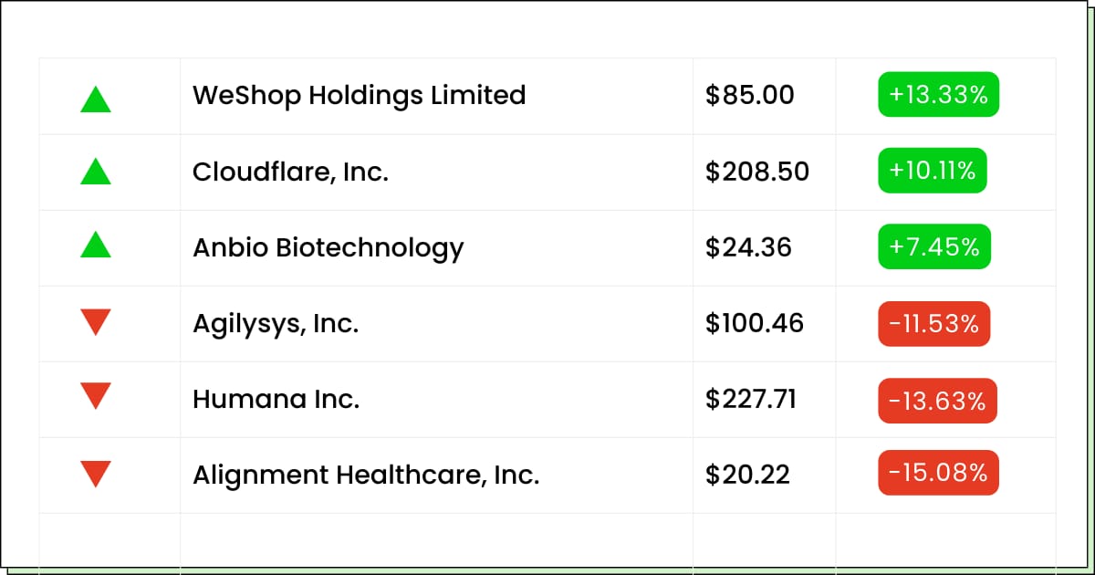 | Humana Inc [HUM]: Premarket Move: −14% | CMS floated near-flat Medicare Advantage rates for 2027 and insurers collectively face-planted. This is the kind of policy headline that can erase months of good behavior in one morning because it hits the whole profit math. | Now the market will spend weeks gaming out whether the proposal gets revised and what it means for benefits, pricing, and margins. | My Take: Don't try to catch the first drop. Let it find a floor. If it stabilizes later, a starter position can make sense. If it keeps bleeding, stay patient and wait for clarity closer to the final rate notice. |