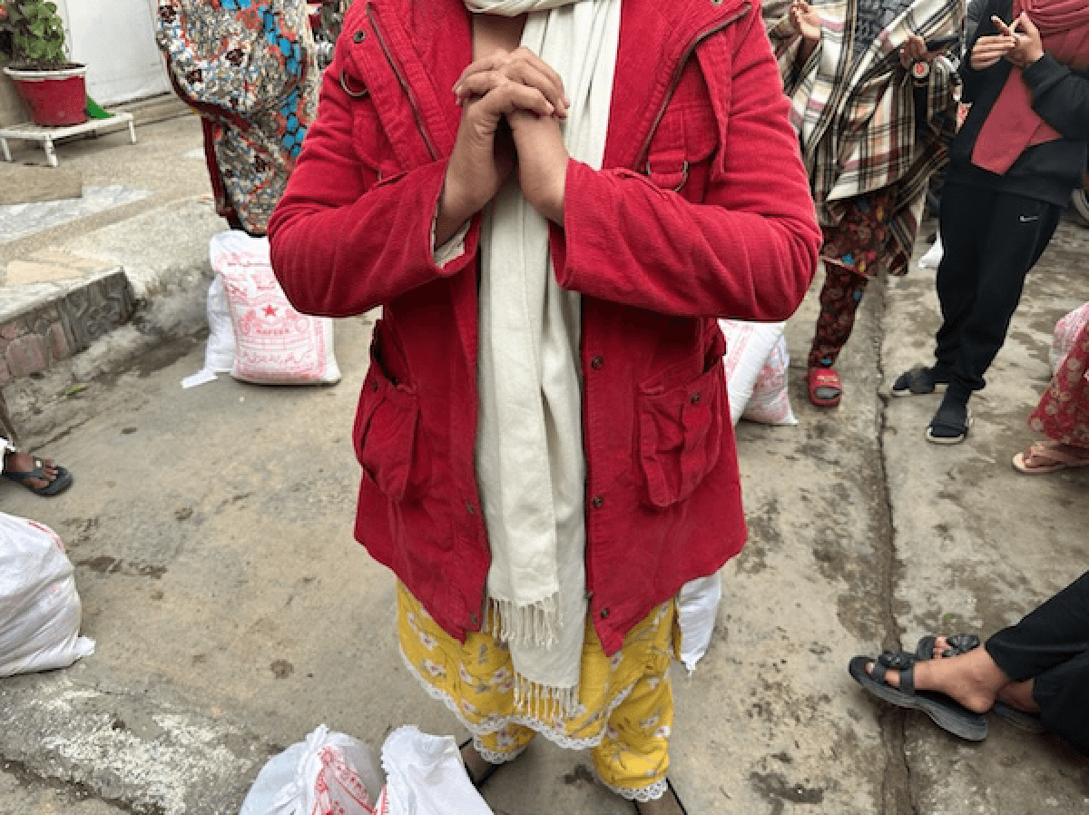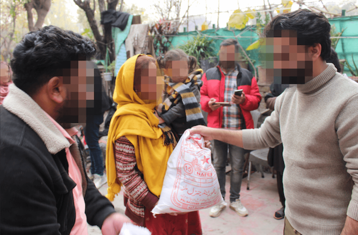 |  | | Above: Rachid handing out an Emergency Relief Kit to a mother and child. | For families who can barely afford to eat, these kits are lifelines.