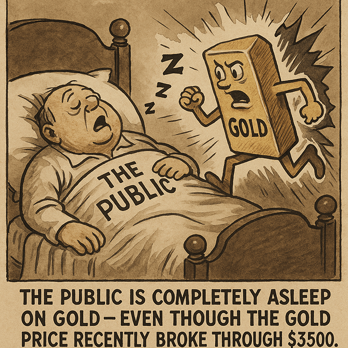 In other words: | | The public is completely asleep on gold — even though the gold price recently broke through $3,500.