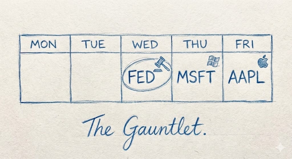 | | | | 📅 Monday Market Context: FOMC & Mag 7 | | Welcome to the most important week of Q1. | The Fed (Wednesday): Markets price a 99% chance of a HOLD. The focus is entirely on Powell's press conference. If he mentions "Sticky Inflation" (2.8% PCE), stocks could slip. Tech Earnings: | | YTD Performance: | Alphabet (GOOGL): +7.1% (Leader) Microsoft (MSFT): -5.3% (Laggard) Apple (AAPL): -4.6% (Laggard)