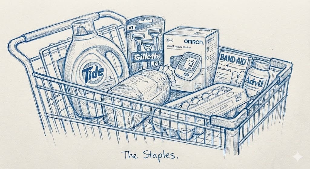 | | 🛍️ Consumer Check: P&G & Abbott | | Procter & Gamble (PG) reports later this week (likely Thursday), but Abbott Labs (ABT) is on deck for Thursday morning as well. | The Trend: Consumer staples are fighting "Volume Declines." People are buying less Tide and more generic brands.