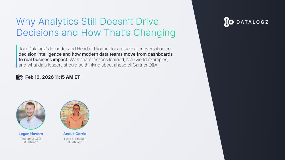 | | | | 🧠 The Strategic Shift from BI to DI | | | | | Decision Intelligence moves teams from reporting what happened to deciding what to do next. But DI only works when the BI layer is trustworthy. If metrics drift, duplicates multiply, refresh is unreliable, or access is over-permissioned, DI scales inconsistency. In this session, Logan Havern, CEO at Datalogz, and Anouk Gorris, Director of Product at Datalogz, explore what changes from BI to DI, and share a DI readiness checklist across governance, reliability, and cost visibility.