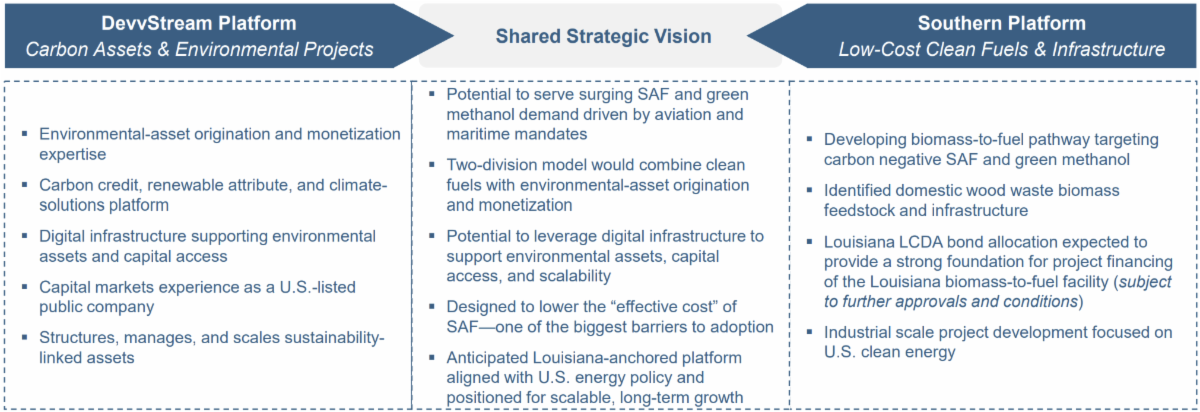 #3. DevvStream Corp. has signed a term sheet with Southern Energy Renewables and Frontline BioEnergy to accelerate Southern’s biomass‑to‑jet fuel development in Louisiana. The partnership adds new pilot‑scale units for producing bio‑methanol and converting it into sustainable aviation fuel, enhancing technical validation and commercialization.