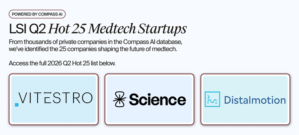 The LSI Hot 25 ranks the top medtech startups heading into each quarter, based on aggregated interest from investors and subscribers across Compass AI, along with proprietary insights from LSI’s global events.
